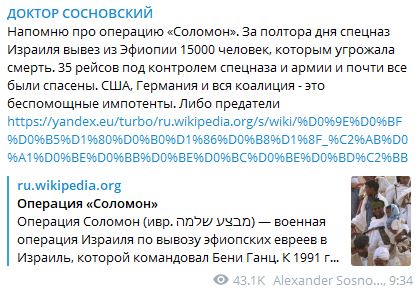 Скриншот:Telegram/ДОКТОР СОСНОВСКИЙ