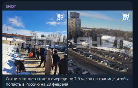 Как сообщает Telegram-канал SHOT, с 20 февраля на границе скопилось огромное количество желающих пересечь её до вступления в силу новых правил. С 24 февраля эстонские власти разрешат проезд только в дневное время. Кроме того, автобусные компании отменяют вечерние и ночные рейсы по маршруту Таллин - Санкт-Петербург.