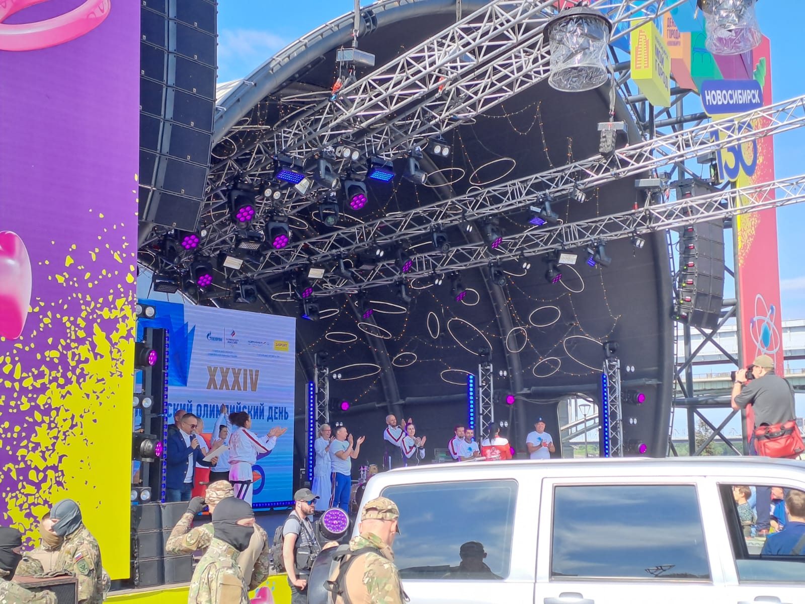 Помимо спортивного праздника, на главной сцене также состоялись показательные выступления. В частности, продемонстрировали боевые приёмы бойцы полицейского спецназа "Гром".