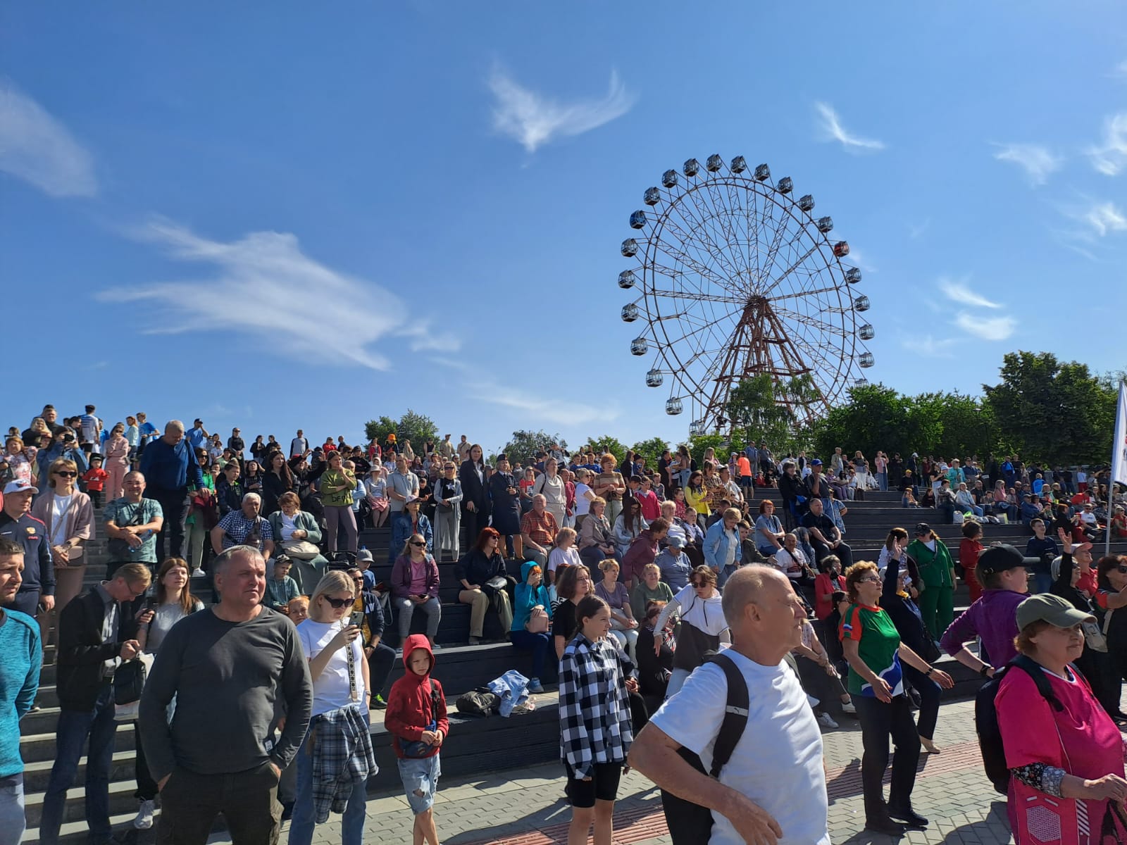 Второй день празднования юбилея города начался со спортивного флешмоба.
