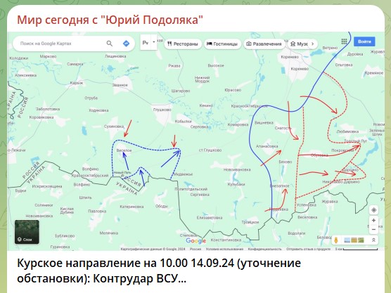 Ко второй половине дня стала ясней ситуация в Курской области. Здесь несколько дней русская армия успешно наступала, освобождая один населённый пункт за другим. Потери врага - сотни в сутки. Однако теперь ВСУ наносят контрудар.
