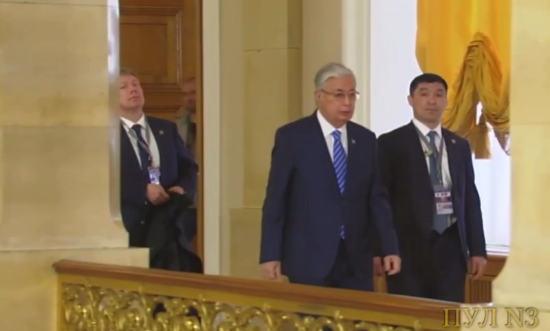 А вот президент Казахстана Касым-Жомарт Токаев явно никуда не торопился. Он не спеша прошествовал в сопровождении своей охраны.