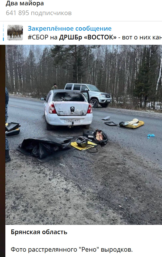 Иномарку с боевиками вычислили через считаные часы после теракта. Как указывал в своем телеграм-канале депутат Госдумы Александр Хинштейн, "Рено", на котором передвигались подозреваемые, был обнаружен ночью в районе деревни Хацунь Карачинского района Брянской области.