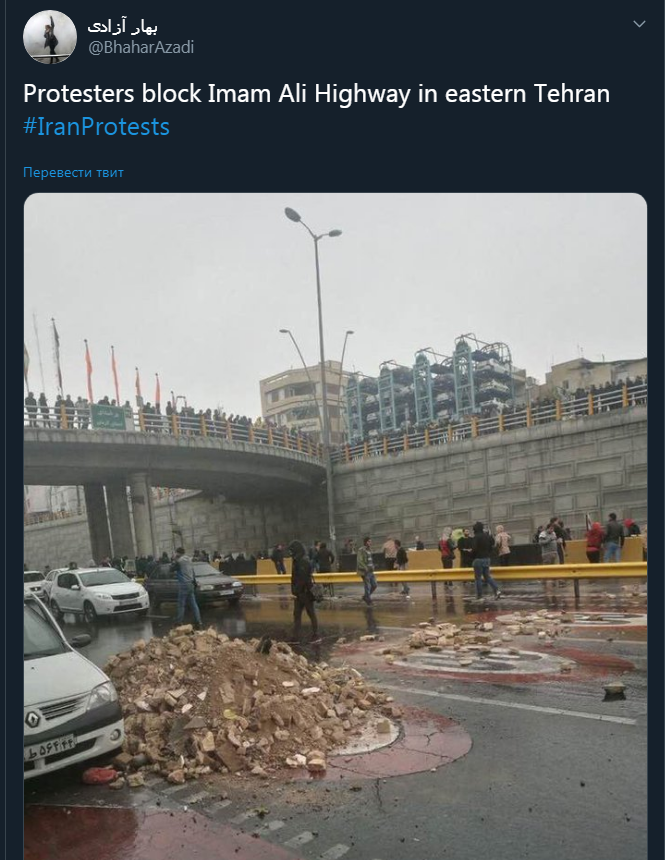 В иранских городах с пятницы не стихают акции протеста, которые начались из-за решения властей повысить цены на бензин. Беспорядки продолжаются в нескольких городах страны, несмотря на неожиданный для этих широт обильный снегопад. "Спускают страну под откос по знакомой всем методичке", - отреагировали в Сети.