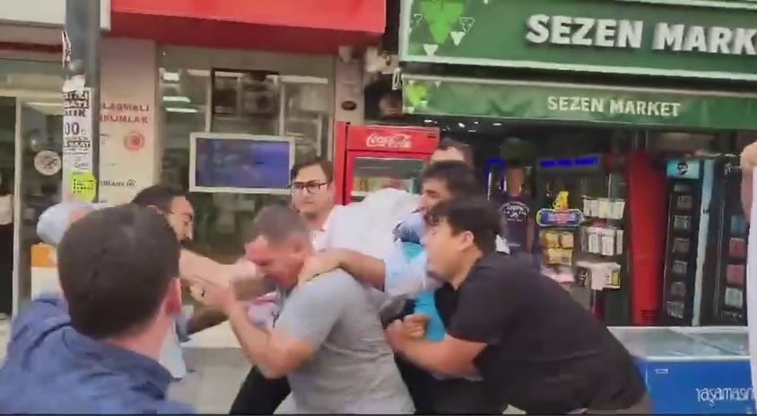 На кадрах, снятых очевидцем, видно, как турки толпой скрутили американца, а затем один из участников нападения накинул ему на голову мешок. После этого в ситуацию вмешались прохожие, которые отбили военного США у разгневанной толпы.