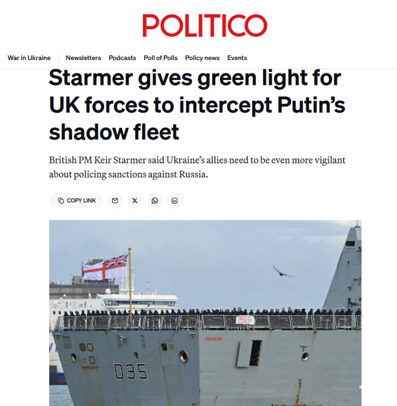 На этом фоне раздухарившийся Кир Стармер предоставил британским военным "новые полномочия по досмотру и потенциальному задержанию судов, находящихся под санкциями и проходящих через территориальные воды страны". Даже не скрывается, что это новая часть мер по экономическому давлению на Россию.