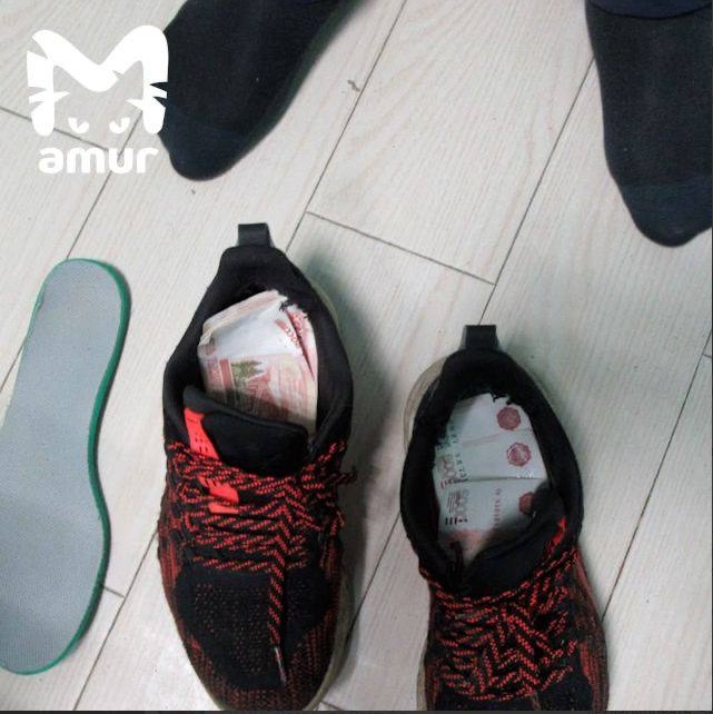 Оказалось, что вместо стелек в кроссовках китайца были пятитысячные купюры. Как передаёт телеграм-канал Amur Mash, таким образом мужчина пытался скрыть от таможенников 470 тысяч рублей. Это 94 пятитысячные купюры.