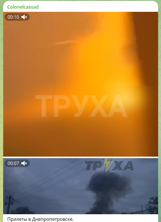 Жители Днепропетровска опубликовали несколько видео, на которых видны последствия прилётов - столбы дыма и сильные пожары. Фиксируется несколько ракетных прилётов.