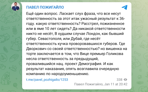 ФОТО: Скриншот https://t.me/pavel_pozhigailo