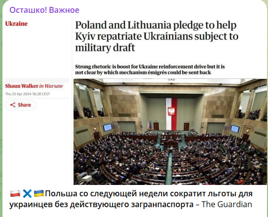 В теории это означает, что многие граждане Украины за границей не могут обновить свои документы, необходимые им для продления видов на жительство в Европе либо статуса беженца. И таким образом Киев рассчитывает, что украинцев попросту будут депортировать на родину, где они пополнят ряды ВСУ.