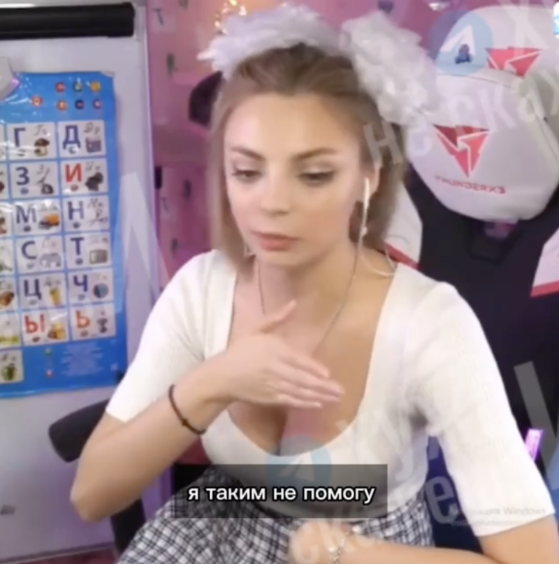 Кроме того, стримерша активно просит донаты у зрителей, тем самым собирая большие суммы, однако отказывается помогать действительно нуждающимся - например, в сборе средств на протезы для военнослужащих. Она отмечает, что лучше поможет "пёсикам и кошечкам", чем русским военным. Она бравирует тем, что получает от своих стримов баснословные суммы и принципиально никогда не станет помогать донбассовцам.