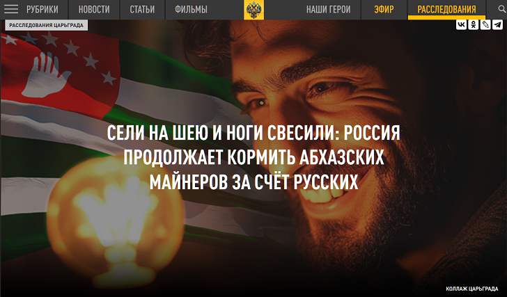 Стыд, а не политика: Россия продолжает кормить мошенников в Абхазии. Журналисты Царьграда провели собственное расследование на тему того, куда делись гуманитарные русские киловатты. И оказывается, дармовая электроэнергия из России превратила Сухум едва ли не в мировую столицу чёрного майнинга.