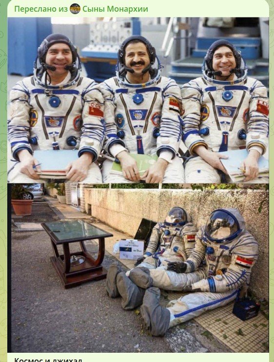 Напомним, в прошлом веке Фарис благодаря Советскому Союзу, русским технологиям, нашей школе и политической воле смог увидеть Землю из иллюминатора космического корабля. Его полёт был частью большой программы, "где космос рассматривался как пространство будущего, а не как реквизит для уличной торговли".
