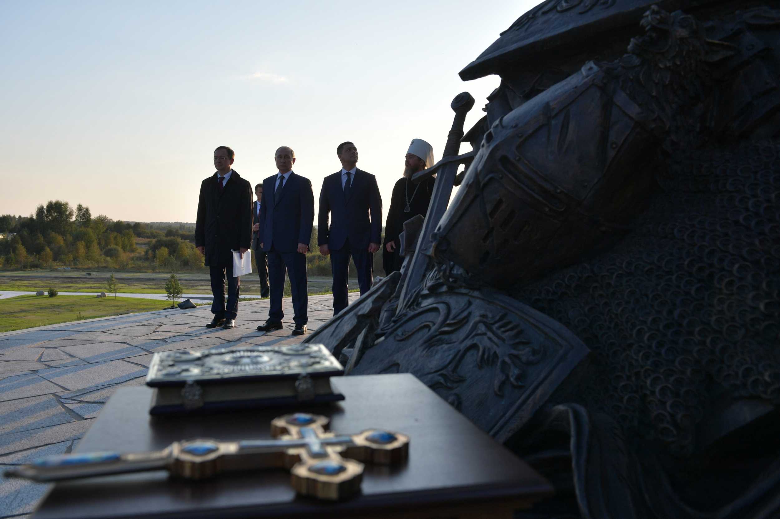 Президент России указал, что ничто не может разорвать священную связь времён и поколений. После этого он поблагодарил скульптора за великолепно выполненную работу.