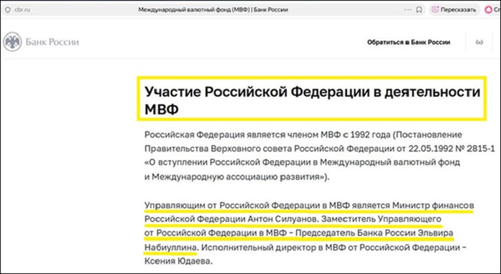 Также Россия продолжает сотрудничество с МВФ, участием в котором мы обязаны Борису Ельцину, Егору Гайдару и Анатолию Чубайсу. Эти люди напрямую ответственны за вступление России в МВФ и Совет Европы.