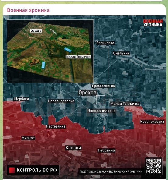 "После взятия Малой Токмачки отдельного внимания заслуживает предстоящее сражение за Орехов, ради которого на Малую Токмачку и было потрачено столько ресурсов и времени. Для Киева этот город стратегически важен, поскольку его потеря откроет РФ прямую дорогу на Запорожье. Поэтому ВСУ будут цепляться за него до последнего и ждать, что они отсюда быстро выйдут, не стоит", – пишет "Военная хроника".