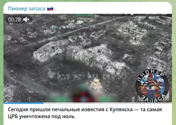 "Сегодня пришли печальные известия с Купянска – та самая ЦРБ уничтожена под ноль. Возможно, кто-то уже видел кадры уничтоженной ЦРБ, где последние месяцы наши парни держали оборону, и некоторые недоканалы уже отчитались об уничтожении наших Героев! Но не тут то было! Мы целый день пытались связаться с парнями, и вот, наконец они вышли на связь!! Парни там уже 4 месяца держат оборону и продолжают!! Да ЦРБ полностью уничтожена и украинцы побежали туда штурмовать и "зачищать", но теперь там лежат только их трупы!", – сообщает телеграм-канал "Пионер запаса".