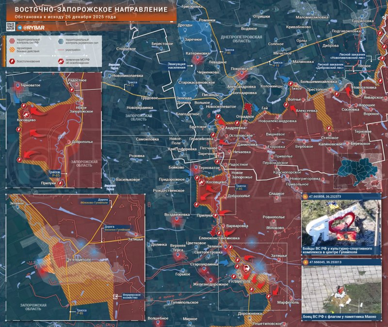 На Восточно-Запорожском направлении завершается операция по освобождению Гуляйполя. На данный момент значительная часть города уже контролируется российскими войсками, а в центральной части населенного пункта установлены флаги.