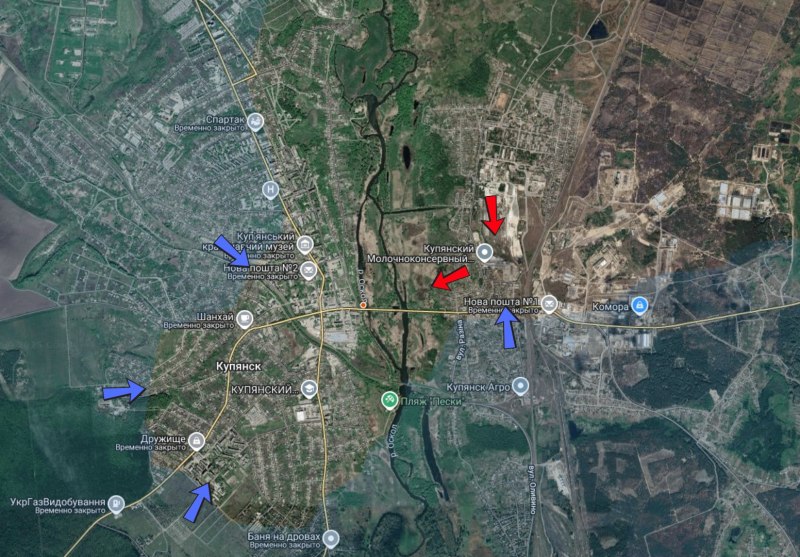 «Наши силы пока что цепляются за опорники в северной части города, пытаясь наладить логистику для очагов сопротивления на правом берегу. Хохол же пытается атаковать уже и на левом берегу со стороны Купянска-Узлового. Ближайшие дни покажут, в чью пользу сыграет погода»