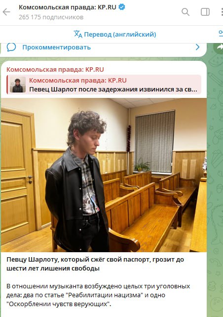 Сбежавший из России певец Шарлот, который ранее высказывался против проведения специальной военной операции, а также сжёг свой паспорт, может получить реальный уголовный срок. Об этом сообщила глава Лиги безопасного интернета Екатерина Мизулина. Она подробно рассказала о дальнейшей судьбе вернувшегося в Россию музыканта, а также объяснила, почему его могут посадить на длительный тюремный срок.