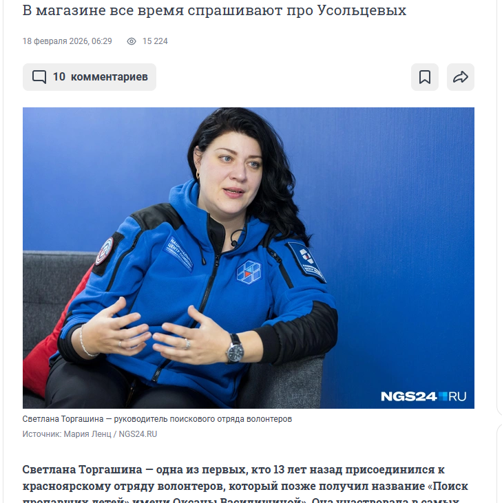 Эти детали раскрыла волонтёр Светлана Торгашина. Она участвовала в поисках с первых дней, координировала других поисковиков.