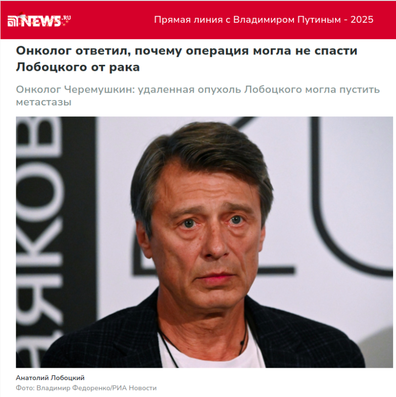 По его словам, если у Лобоцкого был именно этот тип онкологии, то "операция по удалению опухоли могла не помочь в победе над этой болезнью".