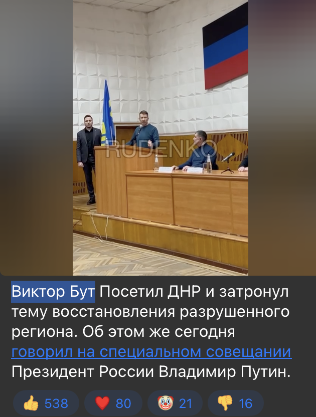 Военный эксперт Владислав Шурыгин в своём телеграм-канале сообщил, что если информация в итоге подтвердится, то таким образом Бут мстит за все проведённые в тюрьмах США годы.
