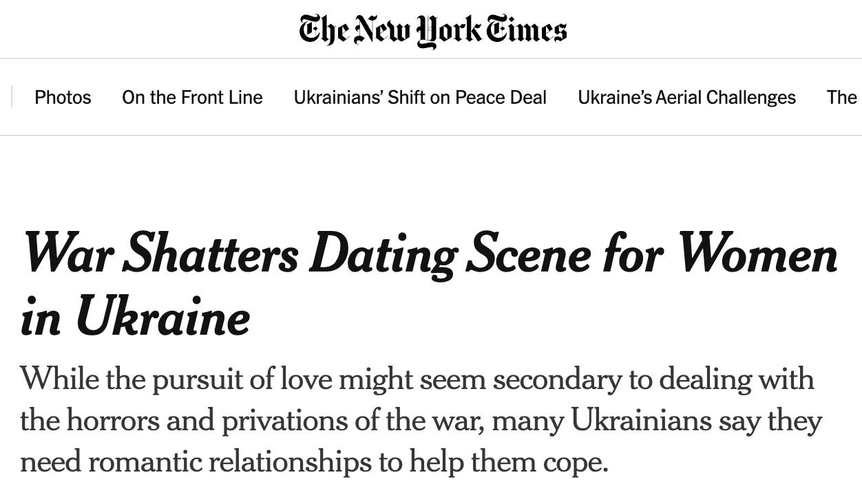 Несмотря на это, многие украинские женщины по сей день сталкиваются с трудностями в поиске мужчин из-за войны и мобилизации, сообщает The New York Times.