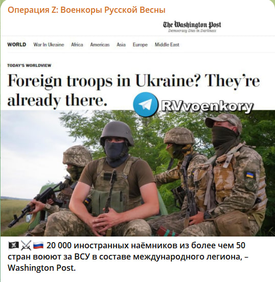Подобную информацию раскрыли и журналисты американской пропагандистской газеты The Washington Post. Правда, по их данным со ссылкой на собственные спецслужбы, американцы и европейцы пытаются зачищать информацию о своих погибших гражданах в ходе конфликта, чтобы не создавать условий для эскалации. Однако, по их данным, на стороне ВСУ участвует более 20 тысяч иностранных наёмников. Сколько из них американцев, в статье не говорится, однако за два года уже погибло более 50 граждан США.