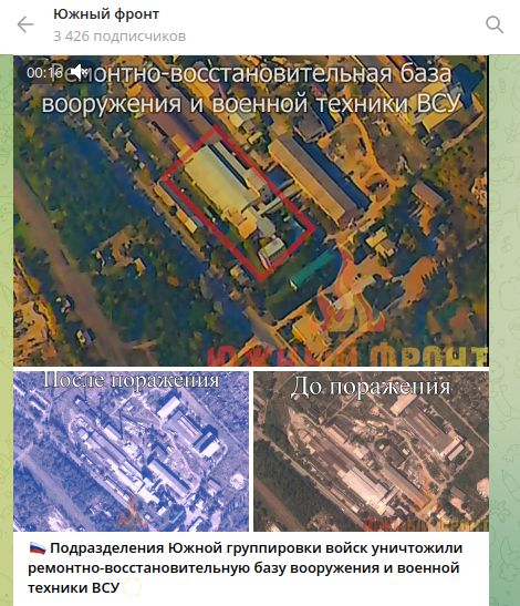 На канале "Южный фронт" сообщили свежие данные с передовой СВО, пока не попавшие в официальные сводки. Оказалось, что подразделения Южной группировки войск с помощью высокоточного оружия уничтожили важную для ВСУ ремонтно-восстановительную базу вооружения и военной техники.