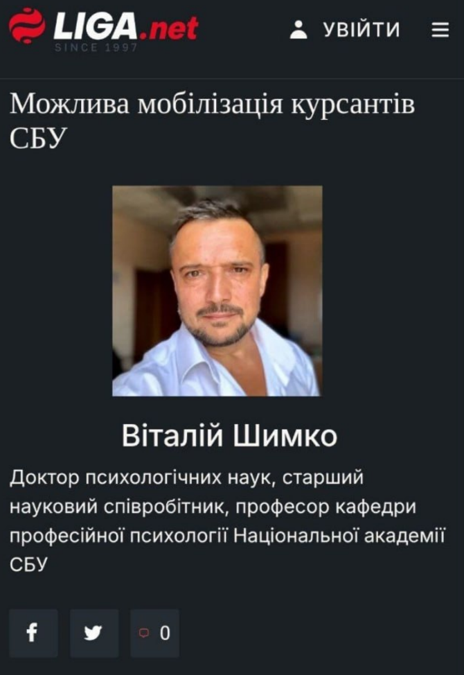 Однако позже этот материал был удалён. Профессор заявил, что его курсанты готовились к работе в спецслужбах, а не в регулярных войсках. Они не имеют подготовки для участия в штурмовых операциях. Он назвал мобилизацию курсантов грубой ошибкой, которая потом ещё "аукнется" Украине, когда обнаружится нехватка аналитиков и оперативников.