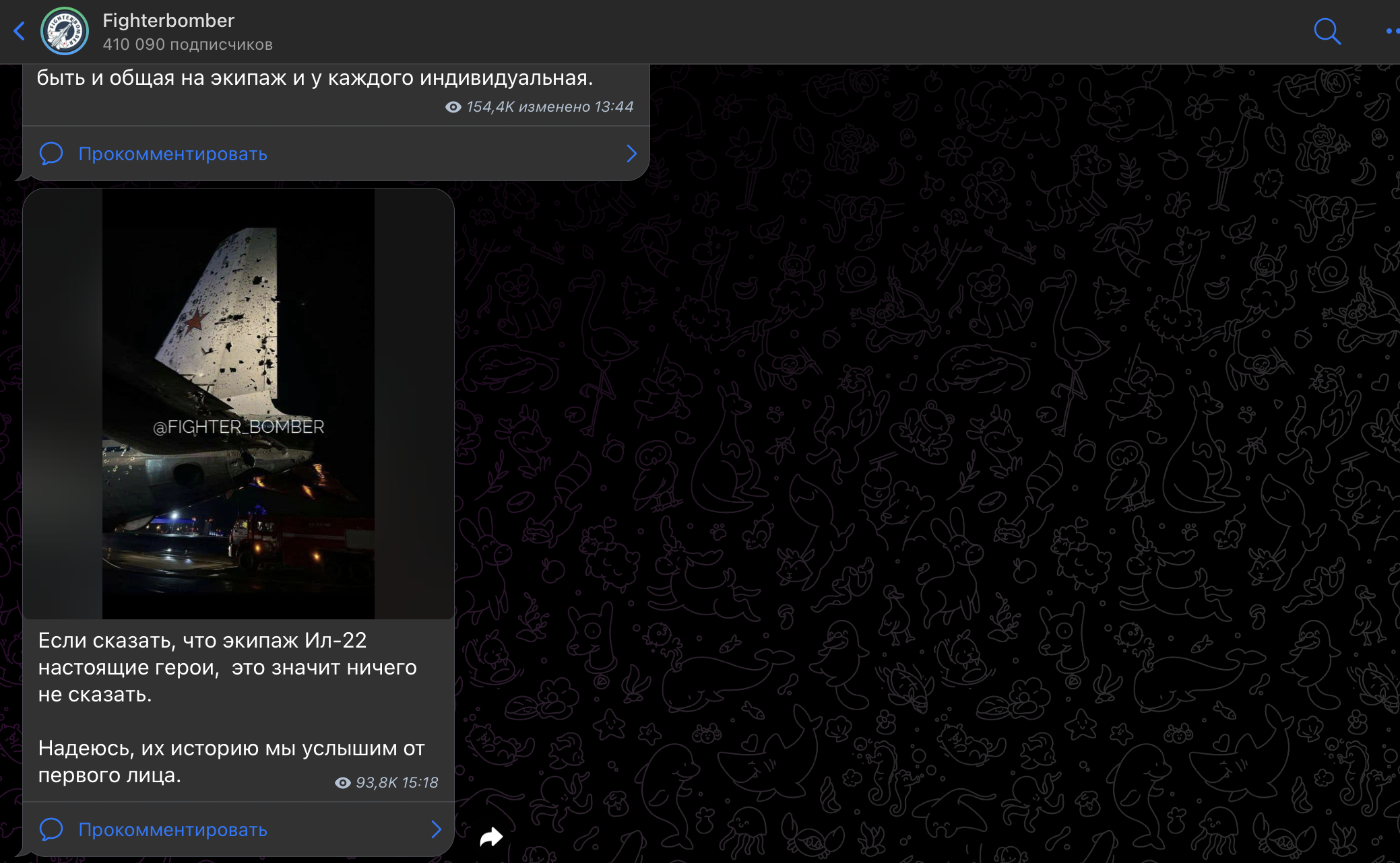 СКРИНШОТ ТЕЛЕГРАМ-КАНАЛА ВОЕННОГО ЛЁТЧИКА FIGHTERBOMBER