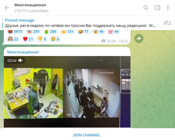 В результате они толпой проникли в служебное помещение и начали избивать охранников. Это зафиксировали камеры видеонаблюдения. На кадрах видно, как охранники сначала отбиваются, но в итоге не справляются с натиском толпы. Часть из нападавших уже задержана.