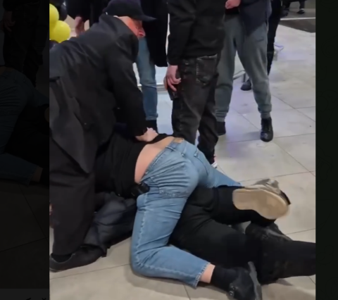Один из нападавших проверяет пульс у посетителя. Скриншот: Телеграм-канал "Mash на Мойке"