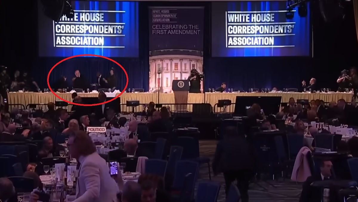 В Вашингтоне в ночь на 26 апреля по московскому времени произошло очередное покушение на президента США Дональда Трампа, уже третье по счёту за последние два года. Американский лидер уцелел, несостоявшегося убийцу остановили у входа в зал. Однако в кадр попал интересный момент.