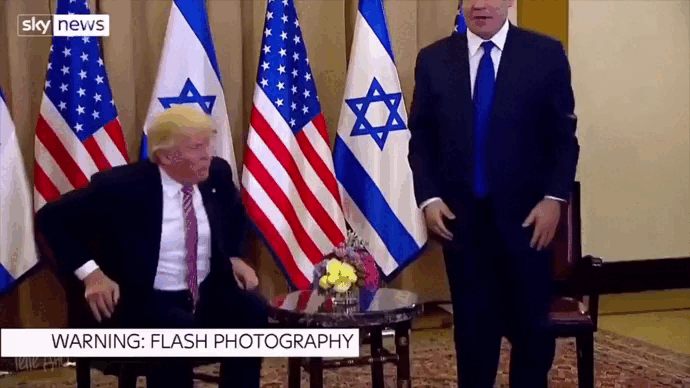 Во время фотосессии Нетаньяху протянул руку Трампу, как того требует дипломатический протокол, но тот не стал её пожимать - развернулся и ушёл. Нетаньяху осталось только дружески похлопать американского политика по локтю, чтобы смягчить конфуз.