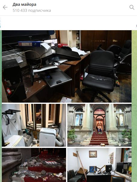 Белград. Сербия. Здания в центре после беспорядков. Фото: скриншот t.me/dva_majors