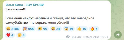 О своём готовящемся убийстве Кива предупредил ещё за два с половиной года до трагедии. Фото: скриншот t.me/The_Kyva