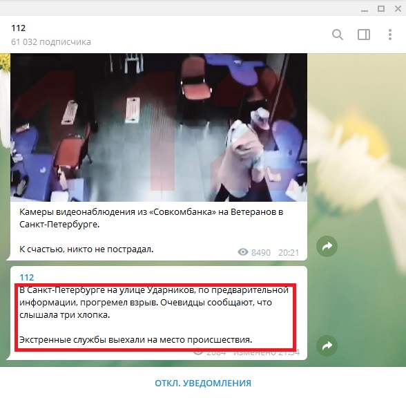 Скриншт Telegram-канала "112"