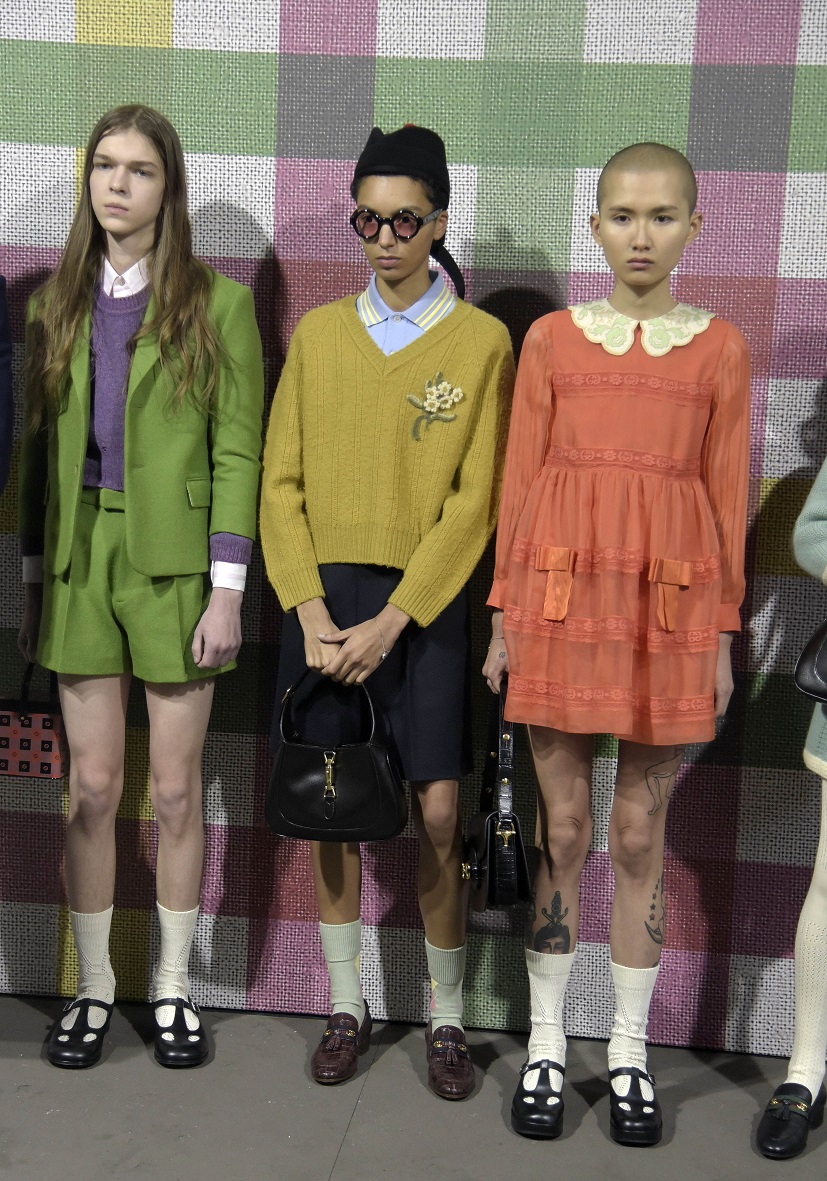Наконец, третье - платье "от бабушки". Тут, будем честны, и мы часто вытаскиваем из "сундуков" бабушкины платья, поскольку они вновь и вновь становятся актуальными. Стандартное "бабушкино платье" - просторное, как правило, тёмное и в цветочек. Фасон простейший, расцветка - не маркая. Если бабушки выбирали такие наряды для удобства, то модниц убеждают, что это тренд. Хотя на деле модные дома тоже шьют "бабушкины платья" из практических соображений. Из особенностей, разве что, попытка того же дома Gucci одеть в такие одёжки мужчин. Получилось гадко, но это выбор Европы. Что поделать...