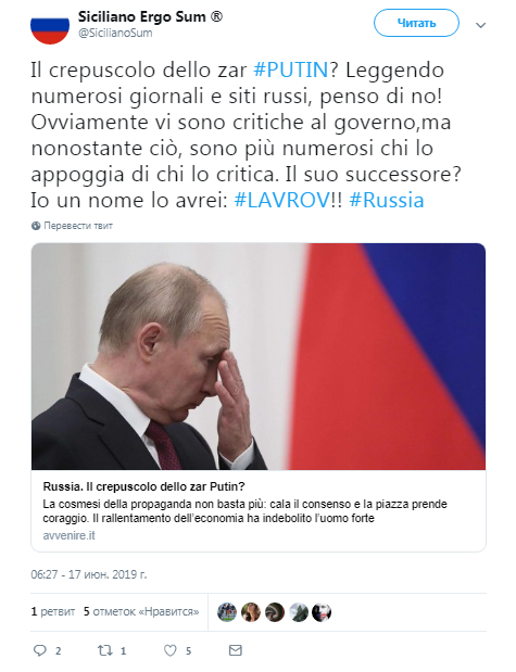16 июня 2019 года итальянский новостной портал Avvenire опубликовал статью, в которой приводятся рассуждения о том, что собой представляет Россия на данный момент и что ждёт её в будущем.