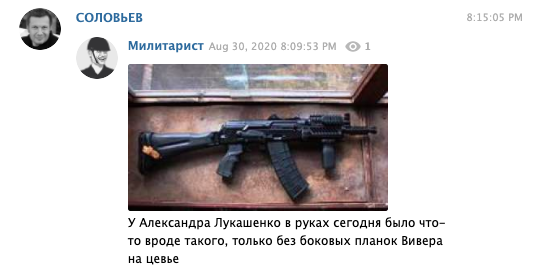 "У Александра Лукашенко в руках сегодня было что-то вроде такого, только без боковых планок Вивера на цевье", - написано в посте.