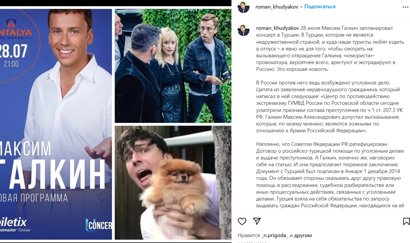 Обновлено: В СКР опровергли информацию о возбуждении уголовного дела в отношении Максима Галкина. А вот Роман Худяков своё заявление так и не удалил.