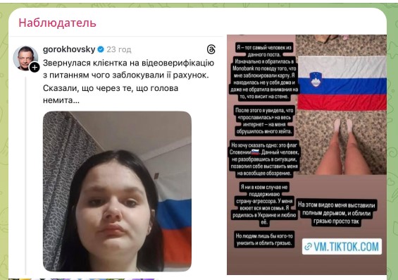 Скандал на Украине: банк обвинил украинку в коллаборационизме, не признав словенский флаг. В итоге девушке досталось за немытую голову.