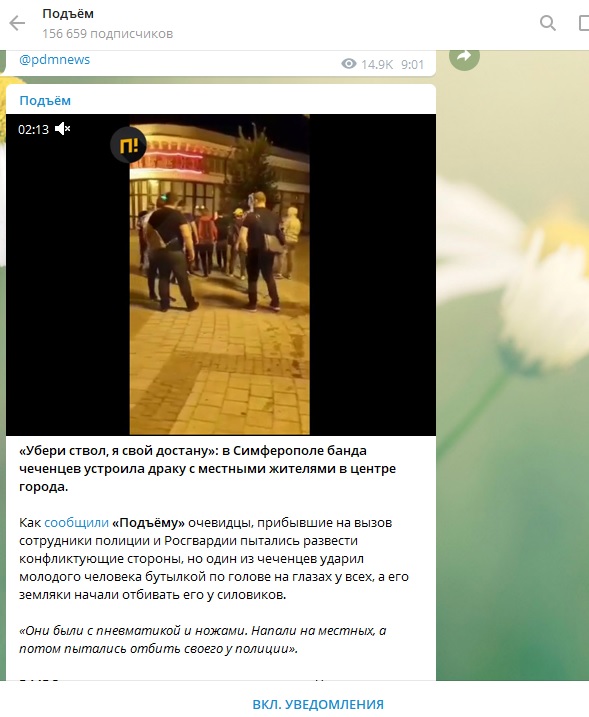 В центре Симферополя приезжие устроили массовую драку с местными жителями. По версии "Подъёма", зачинщиками стали туристы из Чечни. Впрочем, официальной информации об инциденте пока нет.