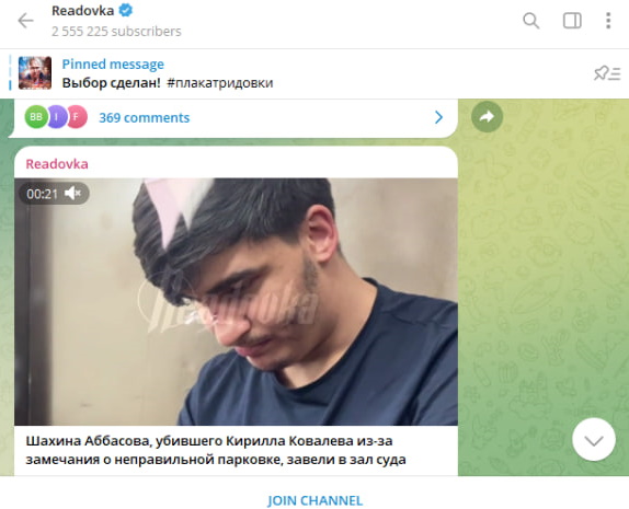 Фото: Скриншот с t.me/readovkanews