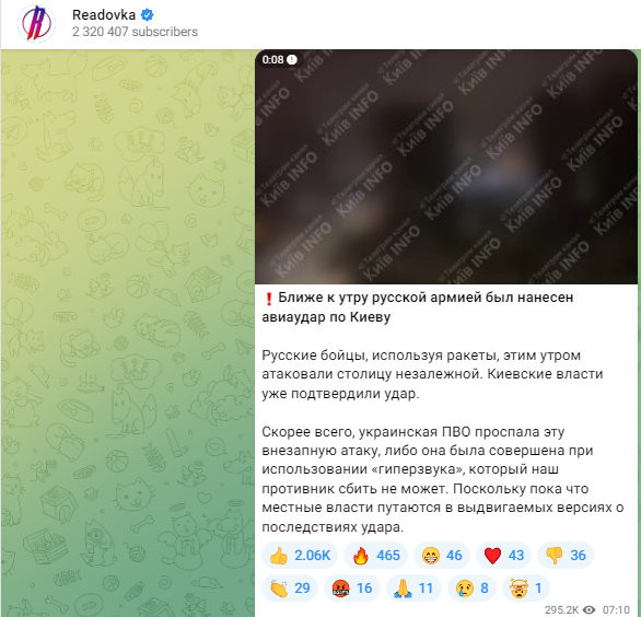 Скриншот: ТГ-канал Readovka