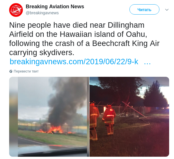 На Гавайях потерпел крушение двухмоторный самолёт King Air. Все девять человек, что были на его борту, погибли. Пожарные сообщили, что после удара о землю самолёт вспыхнул, как спичка. Судя по фото, у тех, кто был на борту, вообще не было шансов выжить.