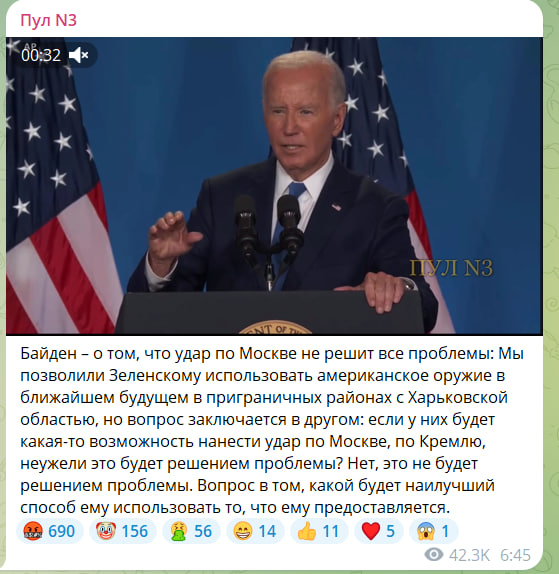 Во время саммита НАТО в Вашингтоне президент США Джо Байден напомнил о том, что Штаты разрешили Зеленскому использовать американское оружие в ближайшем будущем в приграничных с Харьковской областью районах. А потом внезапно заговорил про удар по Москве.