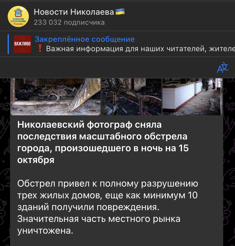 Украинские СМИ также писали о разрушении ресторана в Октябрьском районе. Лебедев предположил, что заведение было задето ракетой ПВО ВСУ. Позже, после появления видео с места ЧП, стало ясно, что снаряд взорвался на Корабельном рынке. Ракета, нацеленная на сбитие российского "Искандера", летела с Терновского направления на севере Николаева.